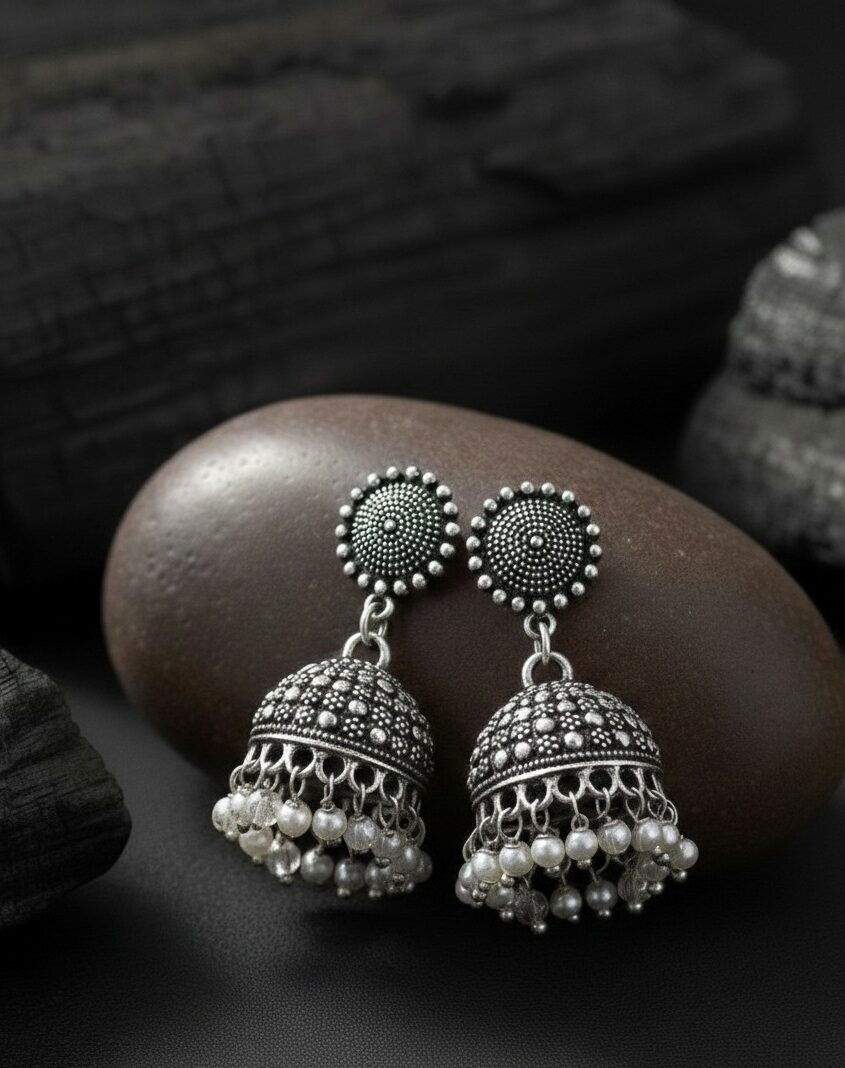 Intricate beaded detailing with classic jhumka silhouette