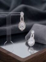 Each element is meticulously placed by hand, showcasing true craftsmanship and uniqueness in every piece. The shimmering silver-tone finish enhances its luxurious appeal, making it a perfect accessory for weddings, evening parties, and festive occasions. Its lightweight construction ensures comfort while maintaining a rich, glamorous look.