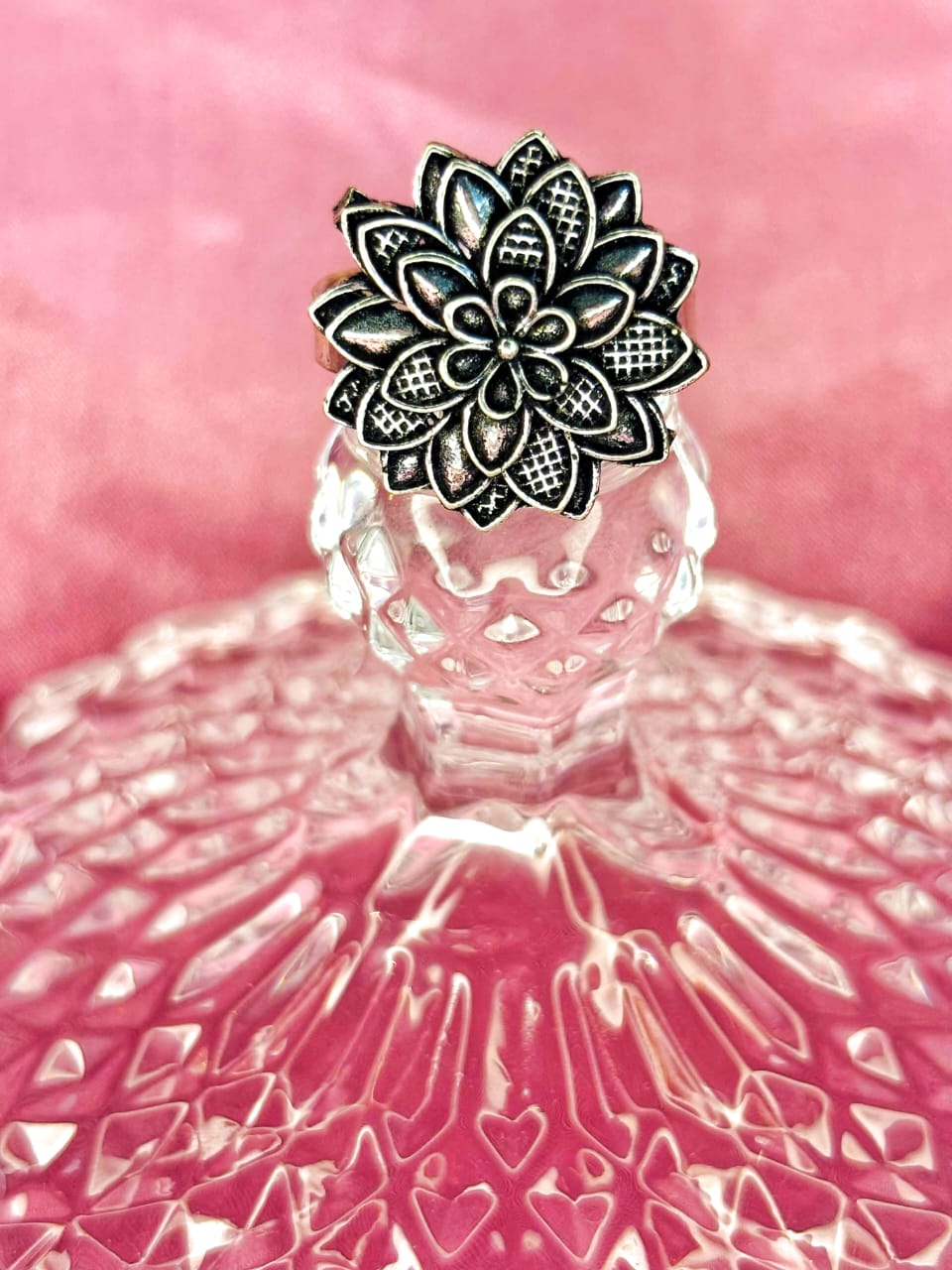 Oxidised Silver Lotus Floral Statement Ring