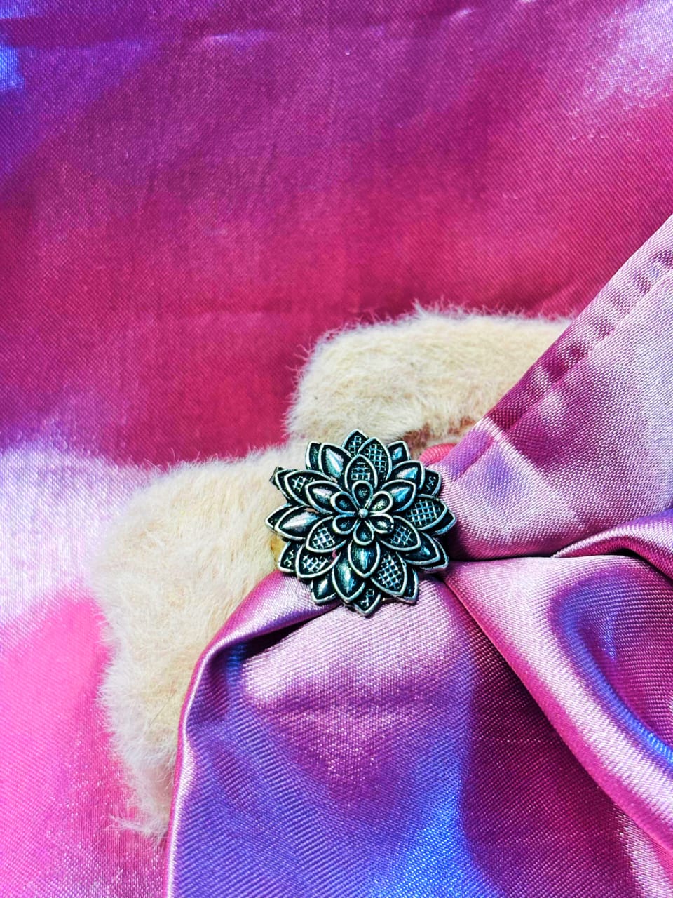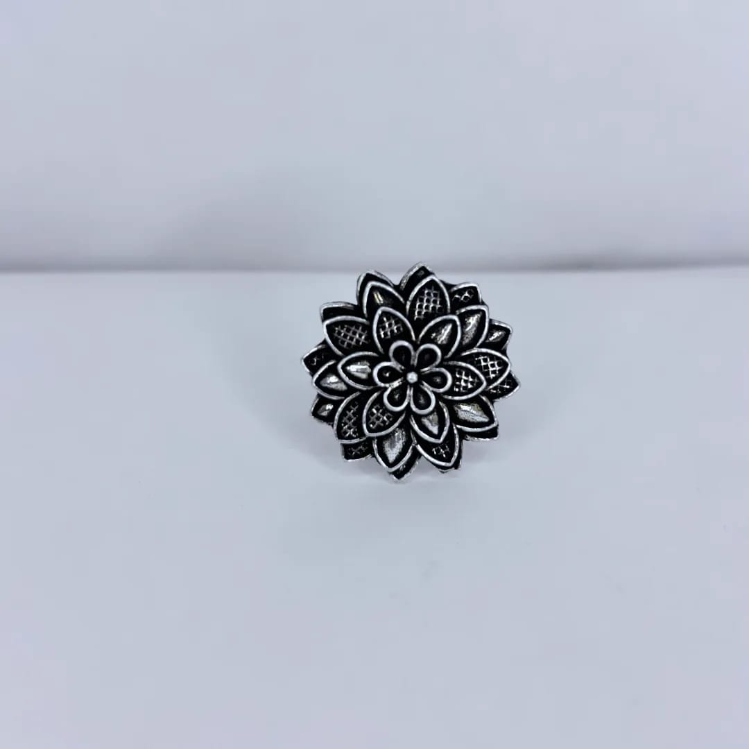 Add a touch of timeless elegance to your jewelry collection with this stunning oxidised silver lotus floral ring. Beautifully designed with intricate petal detailing, this statement piece captures the essence of traditional craftsmanship blended with contemporary style.