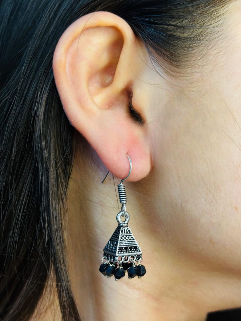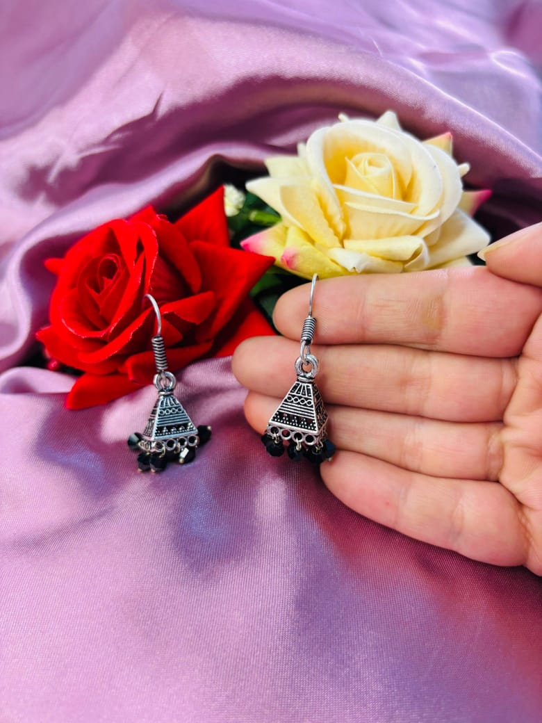 Each earring is finished with a premium artificial oxidized patina for a weathered, antique silver look. To add movement and a touch of modern sophistication, the base is fringed with jet-black faceted beads that dance with every turn of your head.